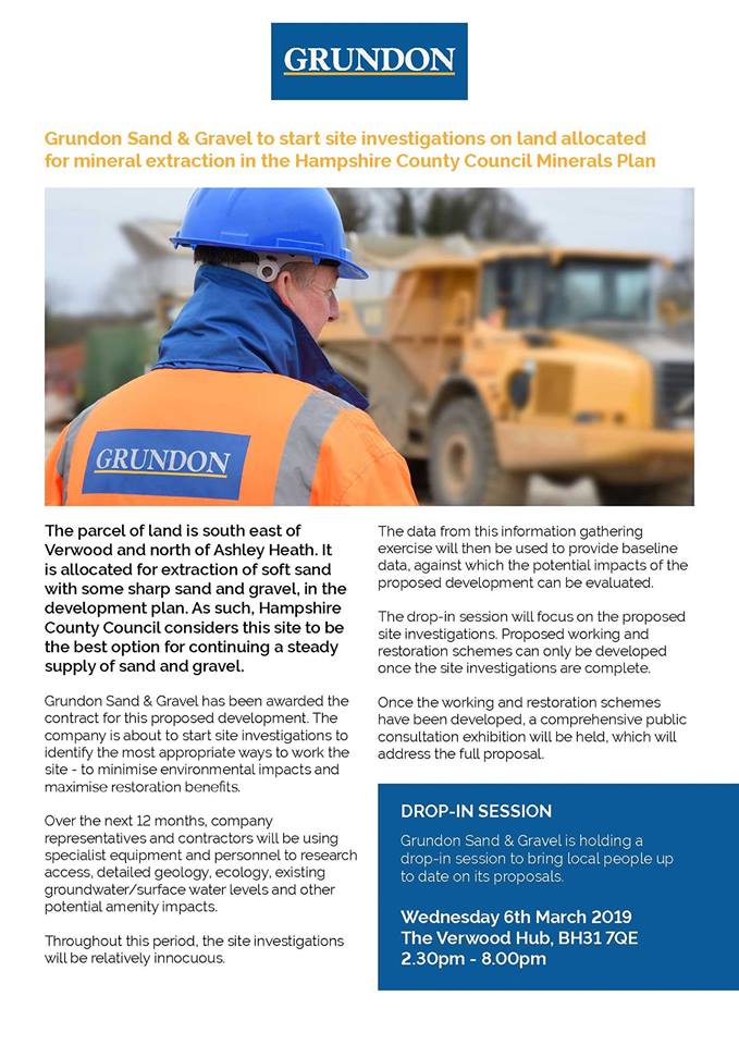 Grundon Sand & Gravel has been announced as the contractor for mineral extraction from the site, which sits next to Moors Valley and opposite the Somerley Household Waste Recycling Centre. They want to identify the most appropriate ways to work the area, to minimise environmental impacts and maximise restoration benefits.