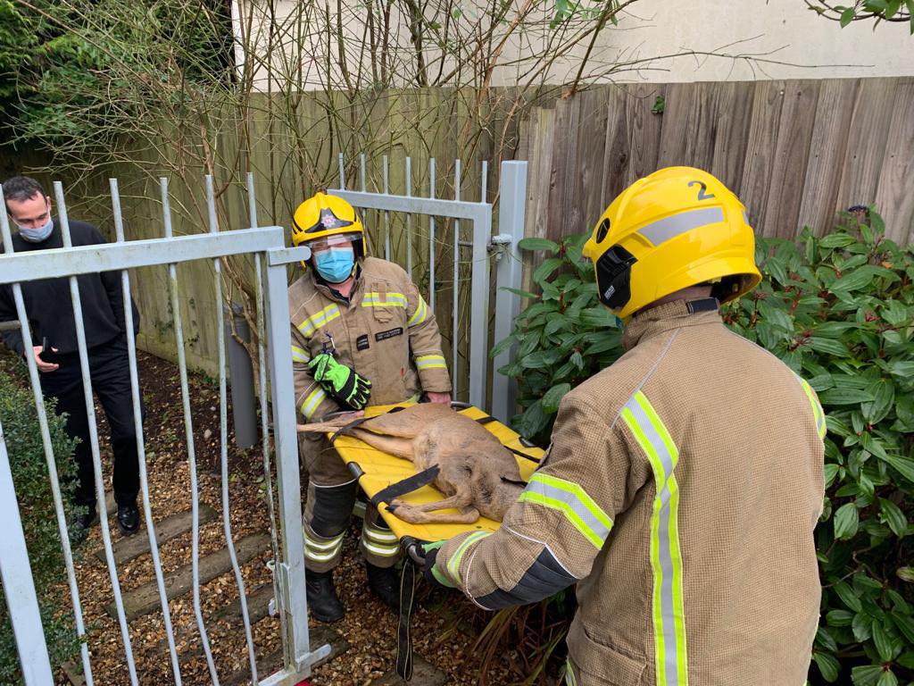 A crew from Verwood Fire Station has recused a deer trapped in a gate at Verwood Care Home.