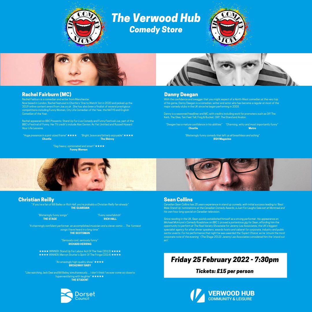 Verwood Hub has announced the line-up for the first Comedy Store of 2022 taking place on Friday 25th February.