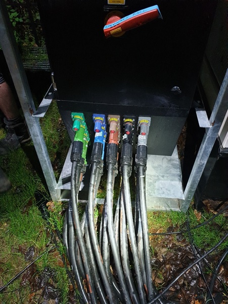 Around 400m of cabling was stolen in total. The cables were a mixture of three-phase 125, 400, 800 and 63 amp cables with red and grey powerlock connectors. These have not been recovered.