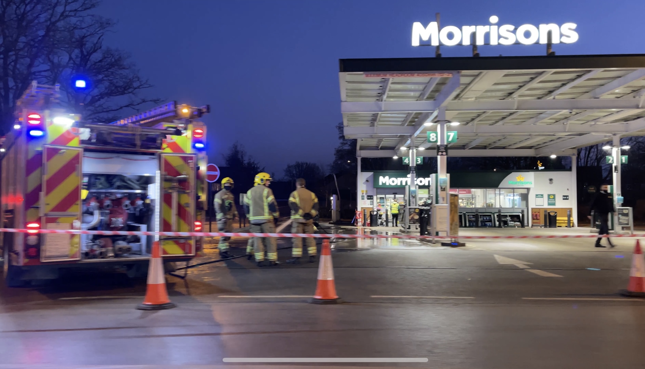 Firefighters made the scene safe and washed down the forecourt for around half an hour.