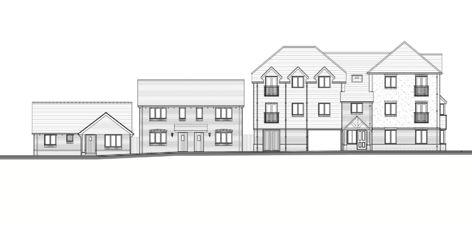 There are 38 homes proposed with a mixture of 1, 2 and 3 storey houses and apartments with up to 3 bedrooms.
