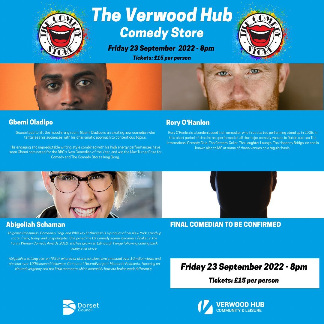 Gbemi Oladipo, Rory O’Hanlon and Abigoliah Schaman are three of the comedians to be confirmed for the next Comedy Store night at The Verwood Hub.
