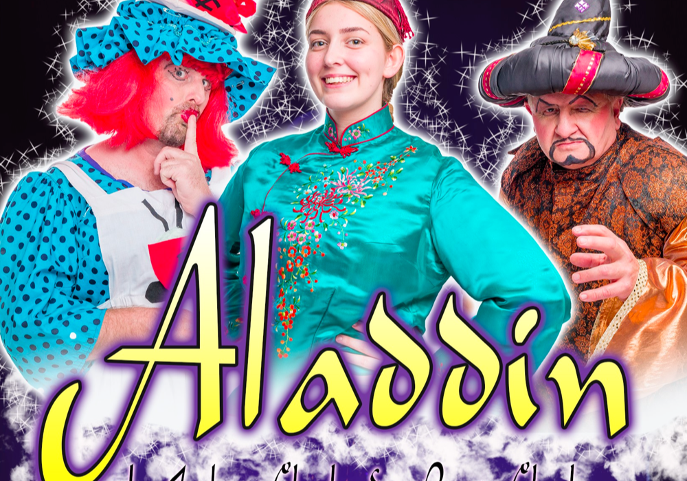 It’s written by Joshua Clarke and Lewis Clarke and stars Megan Kemp as Aladdin, Zoe Richardson as Princess Jasmine, Steve Butterworth as Abanazar and Richard McPherson as Widow Twankey.