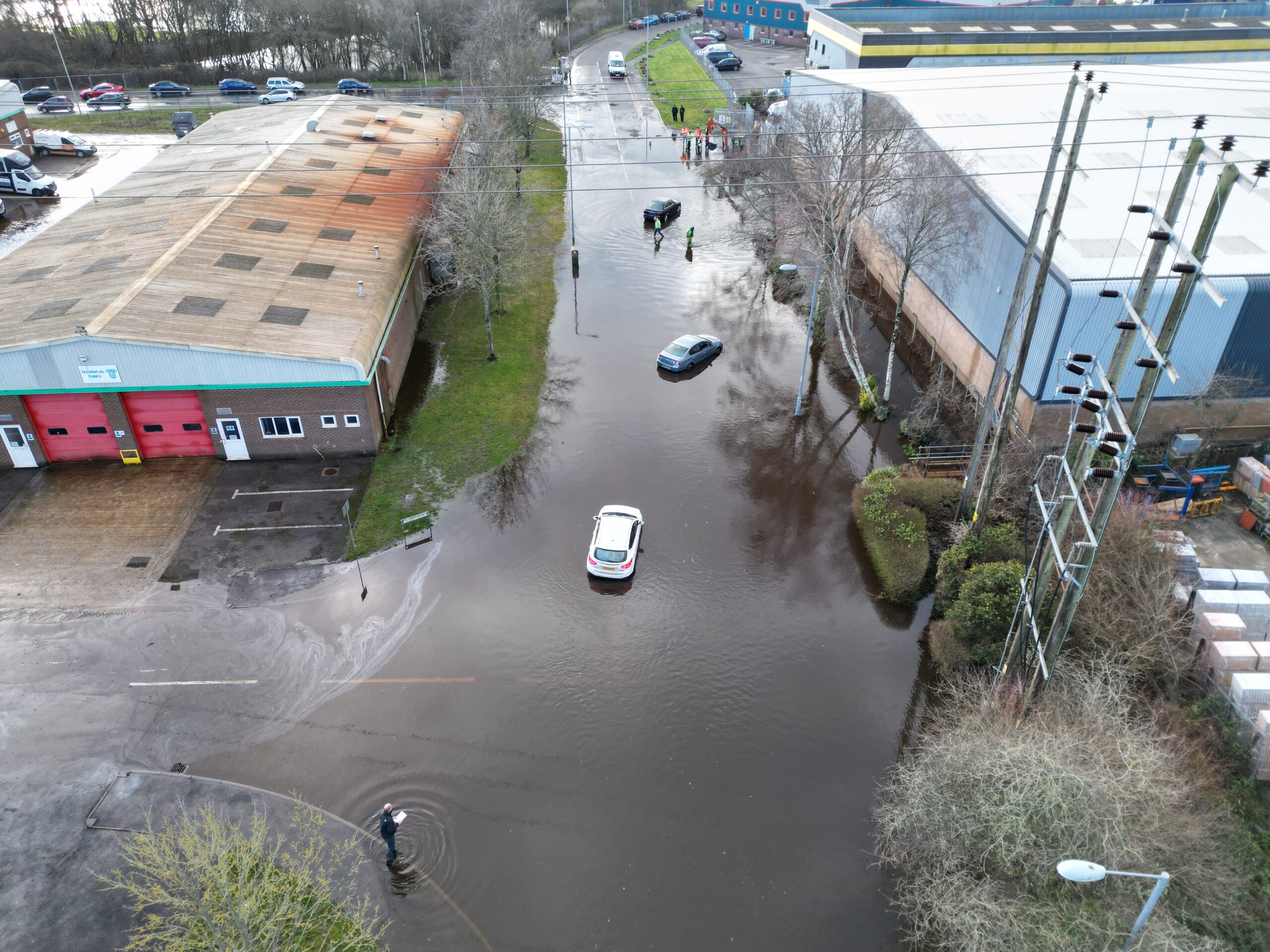 In Three Legged Cross, parts of the Woolsbridge Industrial Estate are closed with stranded vehicles stuck in the water. Dorset and Wiltshire Fire and Rescue Service is currently in attendance.
