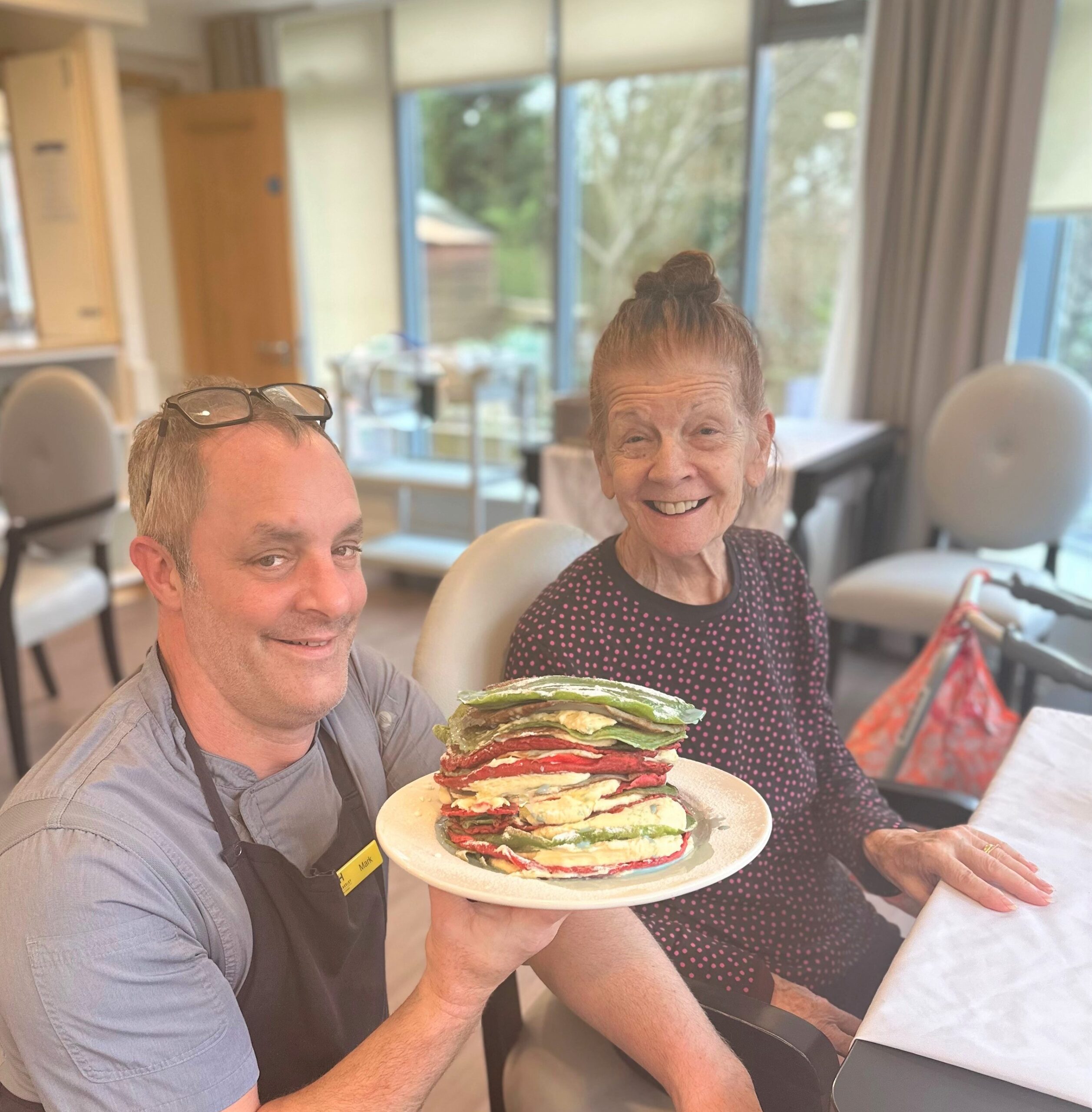 A chef at a Verwood care home has surprised residents with a pancake tower.