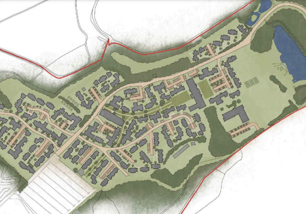 The planning application said the development would be up to 3 storeys in the ‘village centre’ to the eastern side of the site with areas of two storey development to the west. Small areas of one storey development would be placed to the southern and northern ends of the developed area with a buffer zone stretching to the trees and heathland.