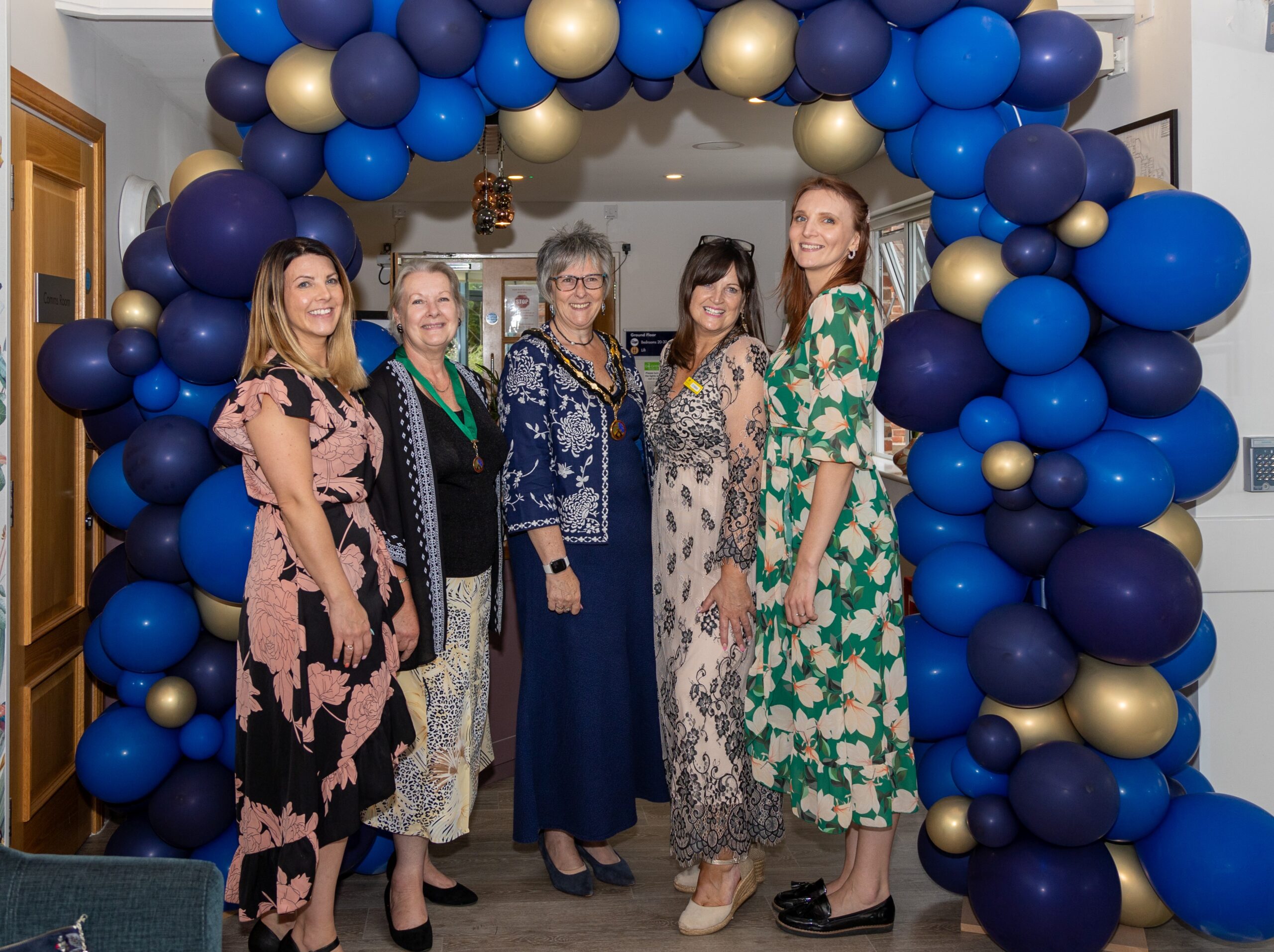 Pictured From left: Rachelle Phillips, Home Manager of Verwood House,  Councillor Charmaine Crossley, The Mayor of Verwood, Councillor Toni Coombs, Donna Milne-Barron, Regional Community Relations Lead, Emilia Turner, Wellbeing & Lifestyle Coach