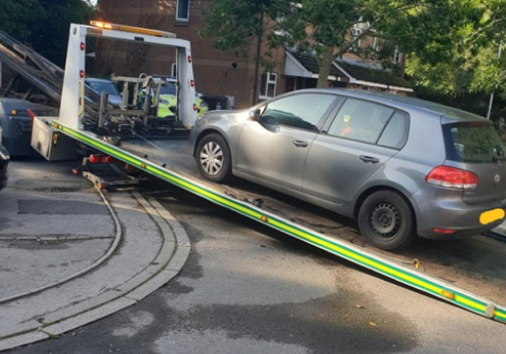 East Dorset and North Dorset Neighbourhood Policing Teams made the move on Tuesday morning, putting the VW Golf on the back of a flatbed truck.