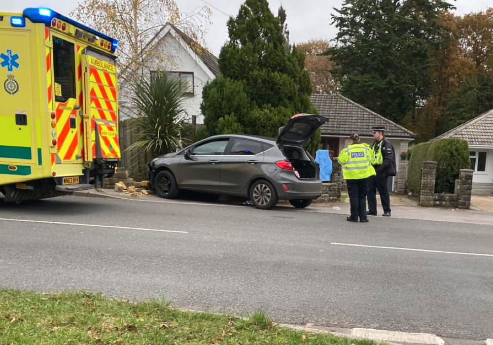 The male driver of the car, which collided with a wall, was taken to hospital by ambulance for treatment after emergency services including Dorset Police attended.